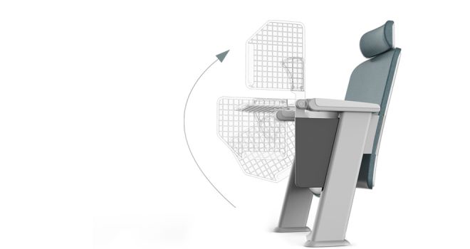 Het zitkussen past het comfort aan op basis van de houding en vouwt automatisch op als de gebruiker opstaat.