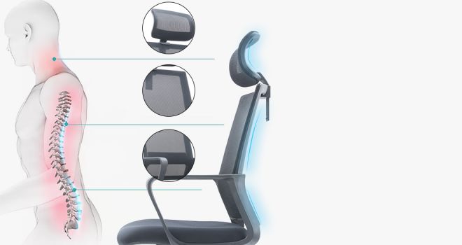 Ergonomische rugleuning, ondersteunt de rug en ontspant op natuurlijke wijze
