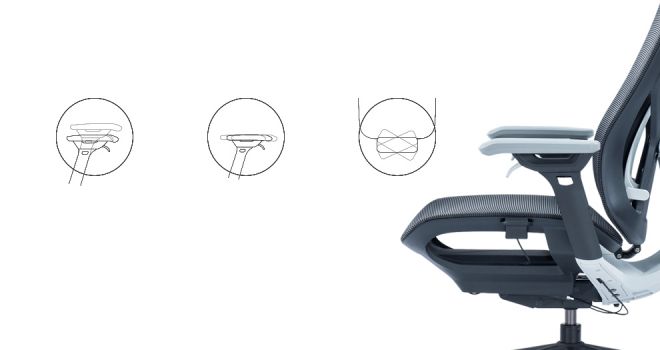 Het ontwerp is geïnspireerd op zweefvliegtuigen, waarbij gebruik wordt gemaakt van gestroomlijnde lijnen om het uiterlijk te schetsen, waarbij een evenwicht wordt gezocht tussen mechanische structuur en geometrische esthetiek. Het ontwerp draait om het concept van "autonome respons". De kanteling van de rugleuning zorgt ervoor dat de stoel automatisch naar voren schuift, waardoor het zwaartepunt van de stoel naar voren wordt verplaatst en het verborgen gevaar wordt opgelost dat de stoel tijdens de lunchpauzes naar achteren draait. Dankzij het draadgestuurde verstelmechanisme bij de armleuning kunnen gebruikers de stoel snel en eenvoudig in een geschikte stand verstellen.