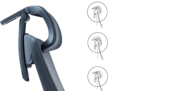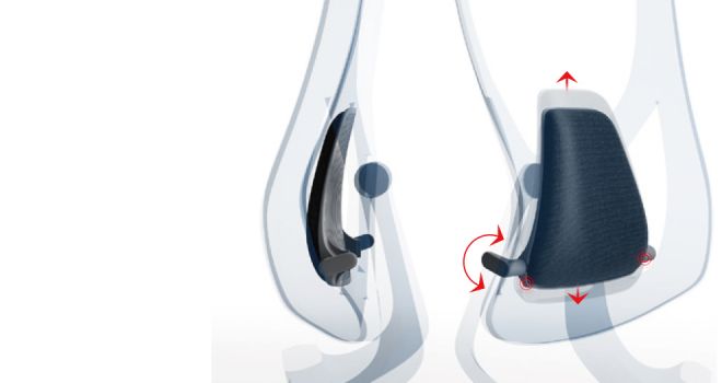 410 mm breed, gebogen, volledig mesh oppervlak In zes richtingen verstelbaar voor verschillende hoogtes