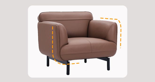 De twee zijden van de voorste opening van de zittas zijn ontworpen met bogen, die integraal verbonden zijn met de armleuning, waardoor een goed gevoel van omgeving ontstaat.